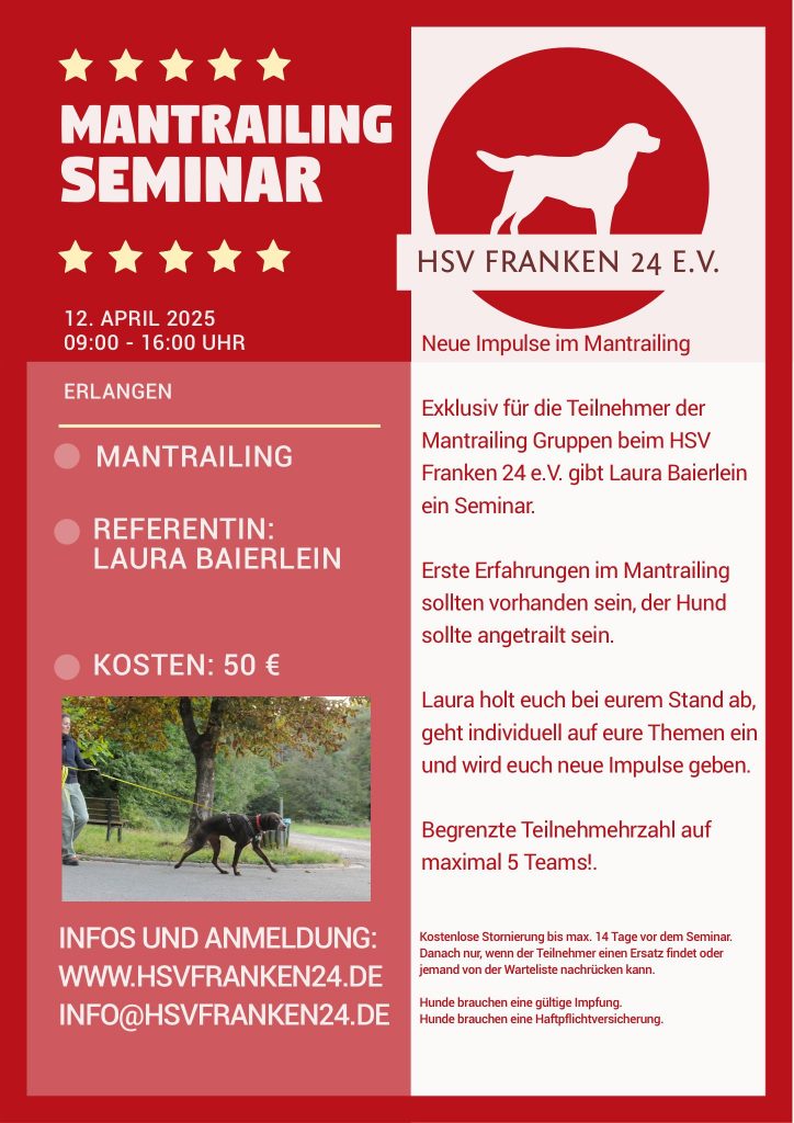 Mantrailingseminar am 12.04.2025 – wird verschoben