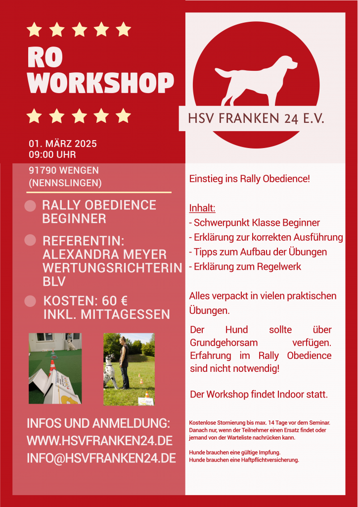 In unseren Räumen in Wengen werden wir in vielen Mini-Parcoursen und Praxisübungen eure Fragen und Baustellen in der Klasse Beginner bearbeiten, sowie euch Rally Obedience nahe zu bringen. In der kleinen Gruppe können wir gut auf individuelle Bedürfnisse eingehen.